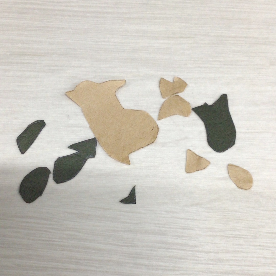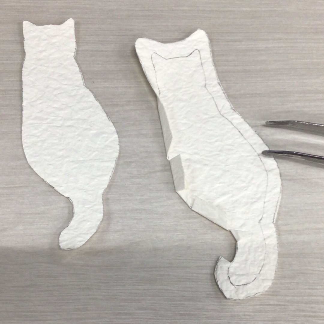 模様となる紙(今回は三毛さんなので、黒と茶、ベースにしぼ感ある和紙調のものを使いました)