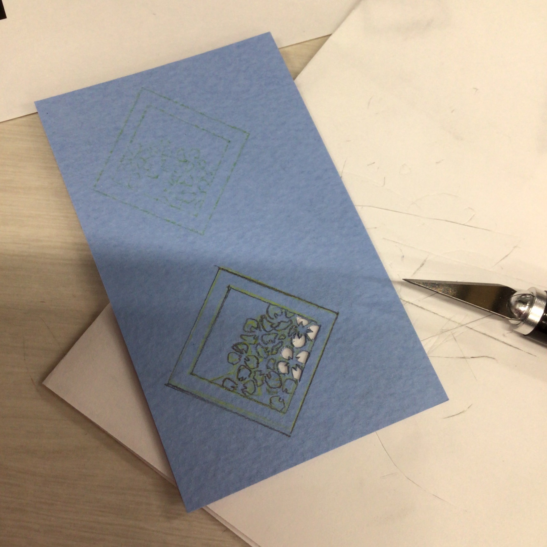 古の技(笑)、型どりしたい枠線箇所にえんぴつで色を塗って後ろからペンなどでなぞると型が写せるというやつです。小学校以来ですね。